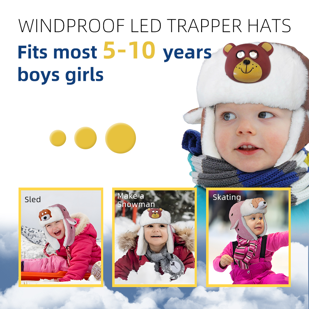 • Kids winter hat comes with a cute led animal headlight convenient for skiing, camping, walking the dog, BBQ, running, fishing, hiking, going out or any night activity.